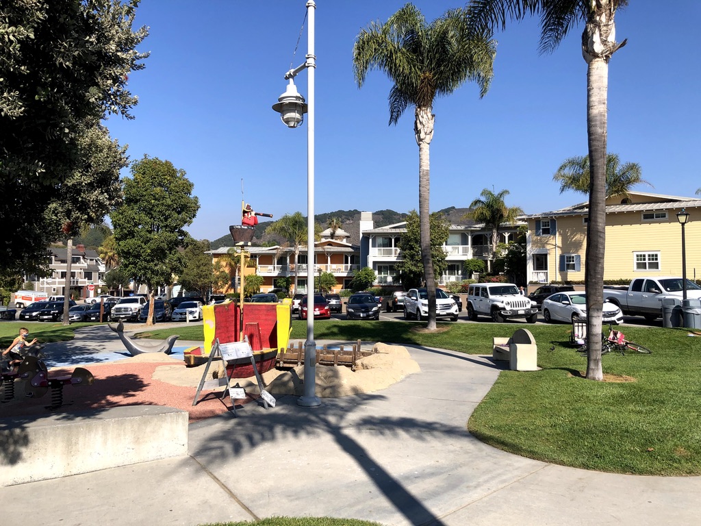 Avila Beach Park é um parque super agradável que abriga uma área gramada, playground para crianças com temática pirata, quadra de basquete, totens explicativos sobre a vida marinha e aves que habitam a região, mesas de piquenique e churrasco, máquinas de venda de refrigerantes, banheiros e também bancos de madeira para sentar virados para a praia, que a nossa cachorrinha Luna curtiu muito (ela ama bancos!). No parque também fica o Central Coast Aquarium, um aquário com mais de 75 espécies diferentes de vida marinha local, incluindo estrelas do mar, caranguejos, águas-vivas, polvo e tubarões-do-mar.