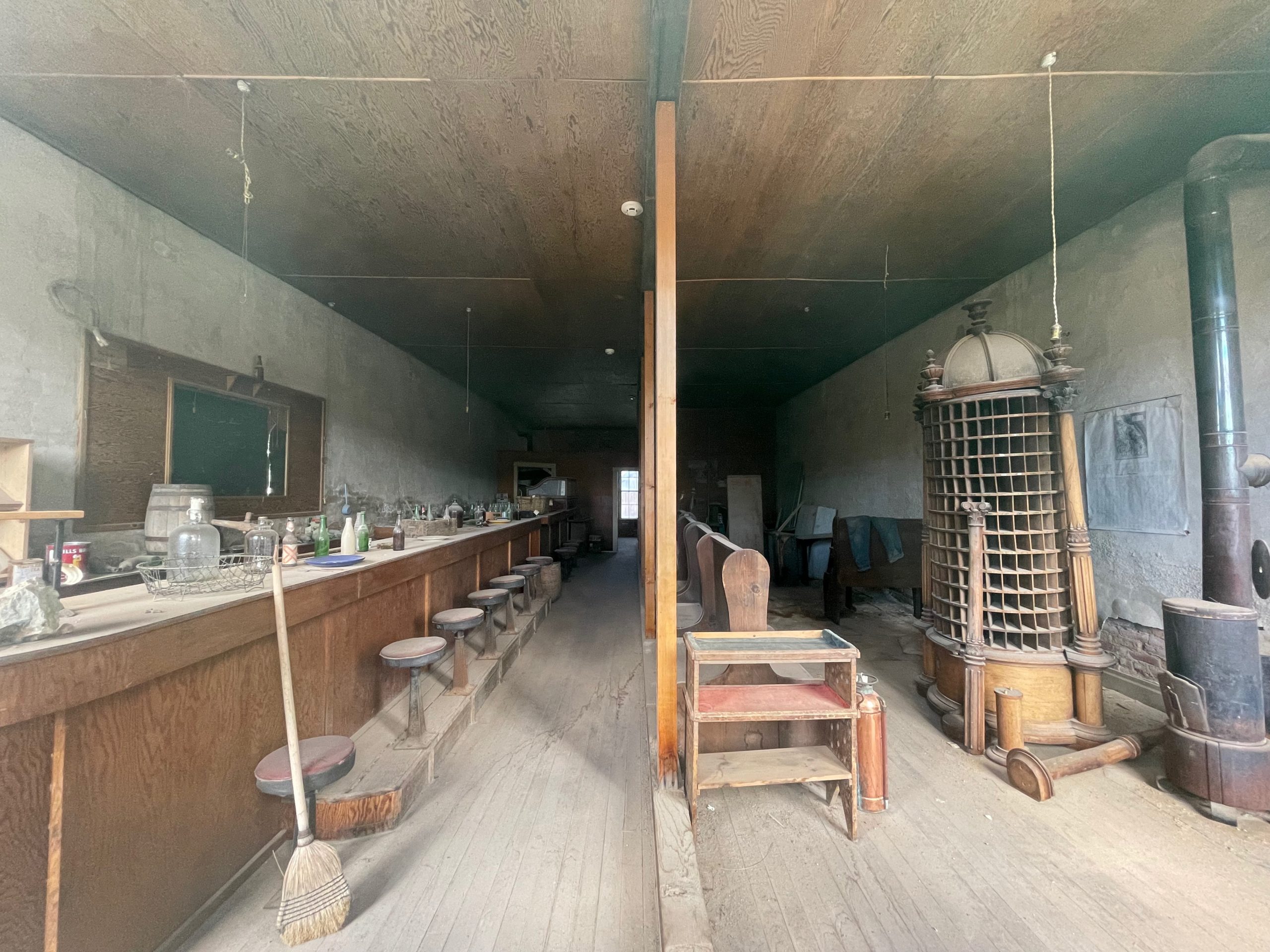 Anteriormente, um restaurante funcionava neste local e pertencia à família Hise. Em 1937, um bar foi aberto pelo chinês Sam Leon, após ele perder o U.S. Hotel em um incêndio em 1932. Leon também tinha Cafés e pensões em Bodie. A barbearia adjacente pertencia a Joe Hahner e foi o último barbeiro a trabalhar em Bodie.
