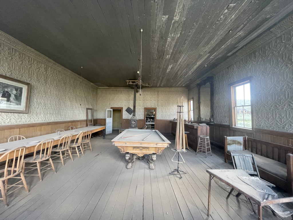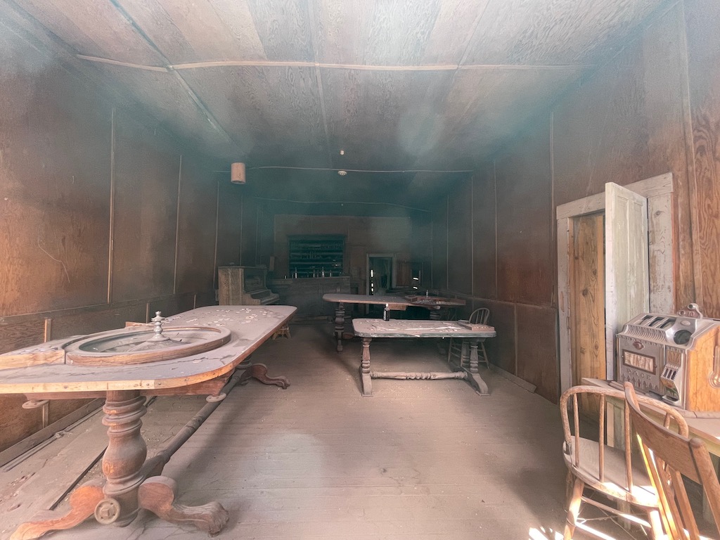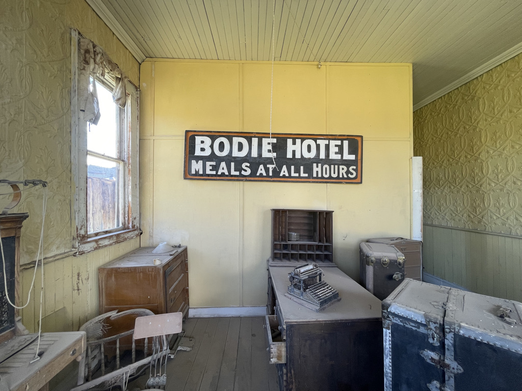 Construído em 1878, o hall do antigo prédio do Sindicato dos Mineiros era o centro da vida social de Bodie. Além de servir como local de reuniões dos mineiros, hospedava diversos eventos religioso, bailes, festas, recitais e festas de Natal. Atualmente, o prédio abriga o museu da cidade com artigos recolhidos em Bodie ao longo do tempo. Ali estão armazenados diversos itens antigos que foram encontrados na cidade, desde livros contábeis, fotografias antigas, entre muitos outros artefatos. Além de museu, o local funciona como Centro de Visitantes, oferecendo informações, além de vender tickets para tours, vender souvenirs (aproveitei para ampliar a minha coleção de ímãs de geladeira) e abrigar uma pequena livraria.