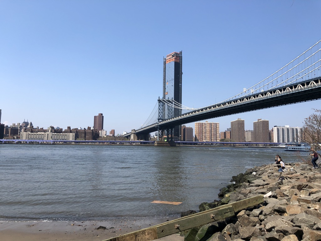 Pebble Beach é o meu lugar favorito em Brooklyn! O local é um estreitíssima faixa de areia repleta de pedras, banhada pelo East River e com uma vista fenomenal para a Brooklyn Bridge e o ONE World Trade Center. O local rende fotos belíssimas e é delicioso para curtir em um dia ensolarado em Nova York.