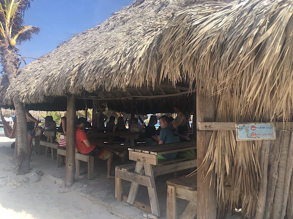 Assim que sair do barco, procure um dos guarda-sóis de sapê e deixe suas coisas em baixo para “guardar” um espaço. É impossível ficar o tempo todo debaixo de sol forte e, por isso, garanta uma sombra. Logo depois de todos desembarcarem, os funcionários chamam todos os visitantes para a casa de praia para passar instruções sobre onde ficam os banheiros, chuveiro, onde retirar as espreguiçadeiras e o equipamento de snorkel e os horários de almoço e saída de volta a Curaçao.