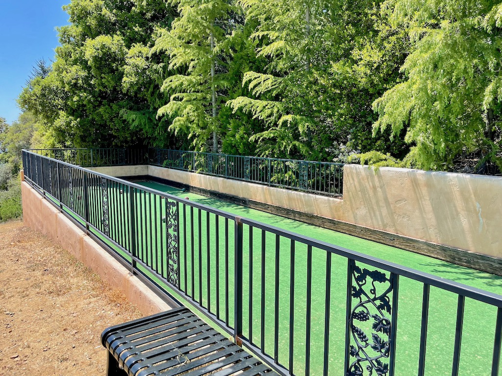 Assim que terminamos nosso piquenique, aproveitamos para curtir um pouco da área da vinícola. O espaço para visitantes é bem pequeno, mas ainda conta com um tabuleiro com peças gigantes de xadrez e damas (que era a alegria das crianças presentes), a única quadra de bocha regulamentada nas montanhas e uma proximidade enorme das videiras. A vista do local é belíssima e o dia colaborou para apreciarmos ainda mais a paisagem.